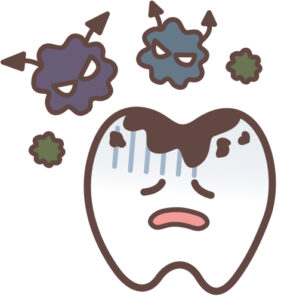 ブラケットの周りは凹凸が多く、歯ブラシが届きにくいため、食べかすや歯垢が残りやすくなります。